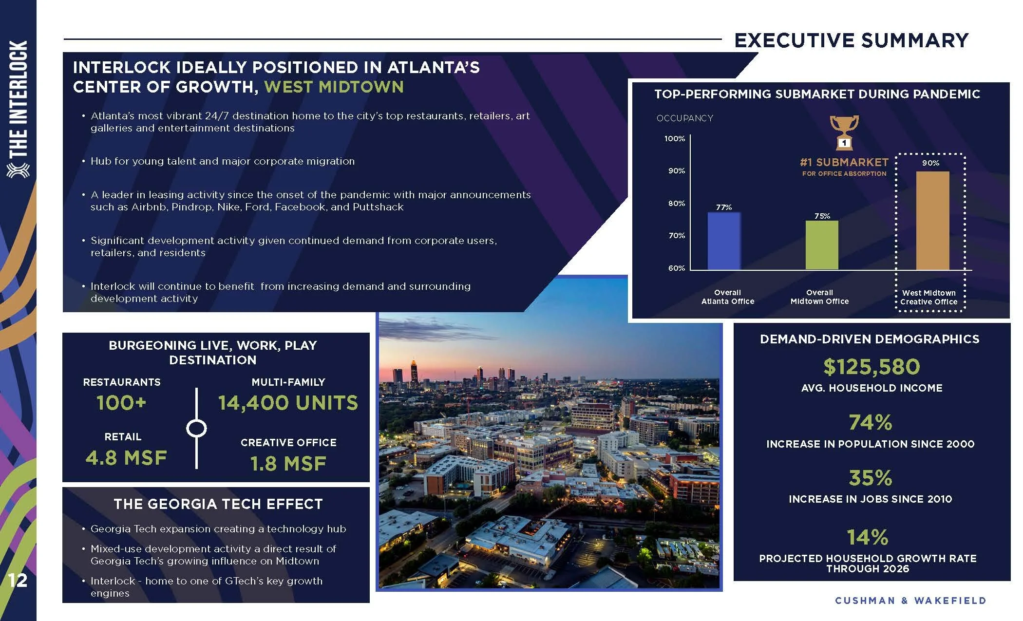 Within the first two weeks, I was tasked to handle one of the biggest pitches the company had seen in years with the new edition of The Interlock in Atlanta’s West Midtown area. I created everything from the ground up and the company was able to win the pitch. I was asked to create the property’s teaser and offering memorandum.